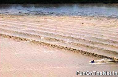 Twice a year, between the months of February and March, the Atlantic Ocean waters roll up the Amazon river, in Brazil, generating the longest wave on the Earth. The phenomenon, known as the Pororoca, is caused by the tides of the Atlantic Ocean wich meet the mouth of the river. This tidal bore generates waves up to 12 feet high which can last for over half an hour.
